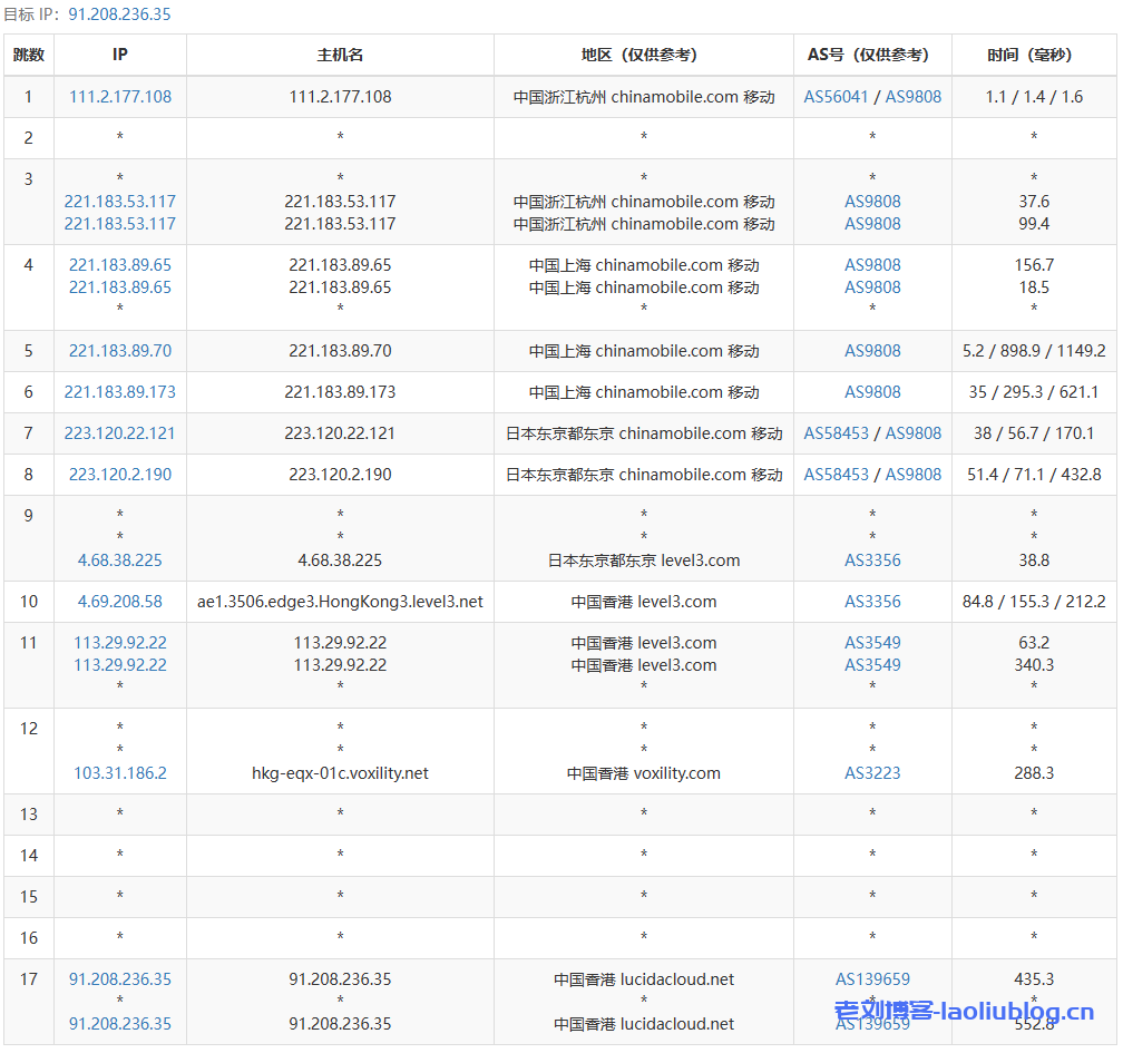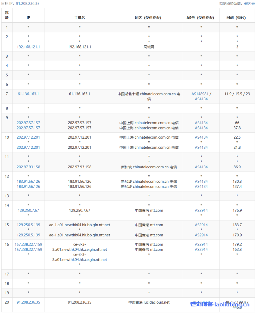 18 61.14.201.122 6.00 ms * China, Hong Kong, ChinaUnicom
