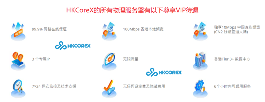HKCOREX 提供高达 30Gbps中国直连带宽,核心优势如下: