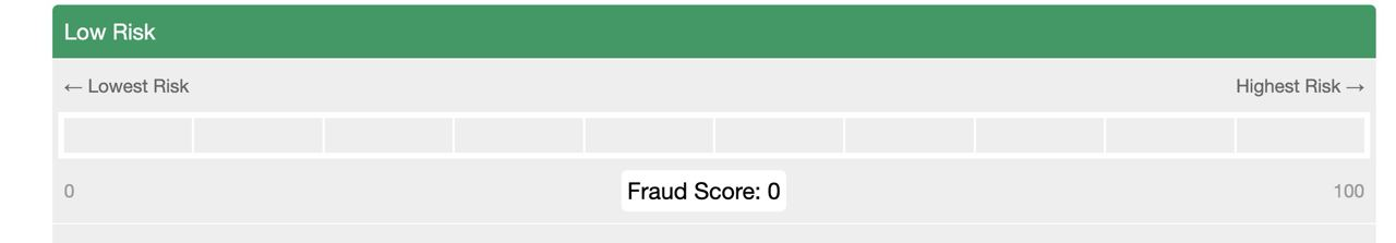 - ✔ Scamalytics检测低风险(接近0欺诈)