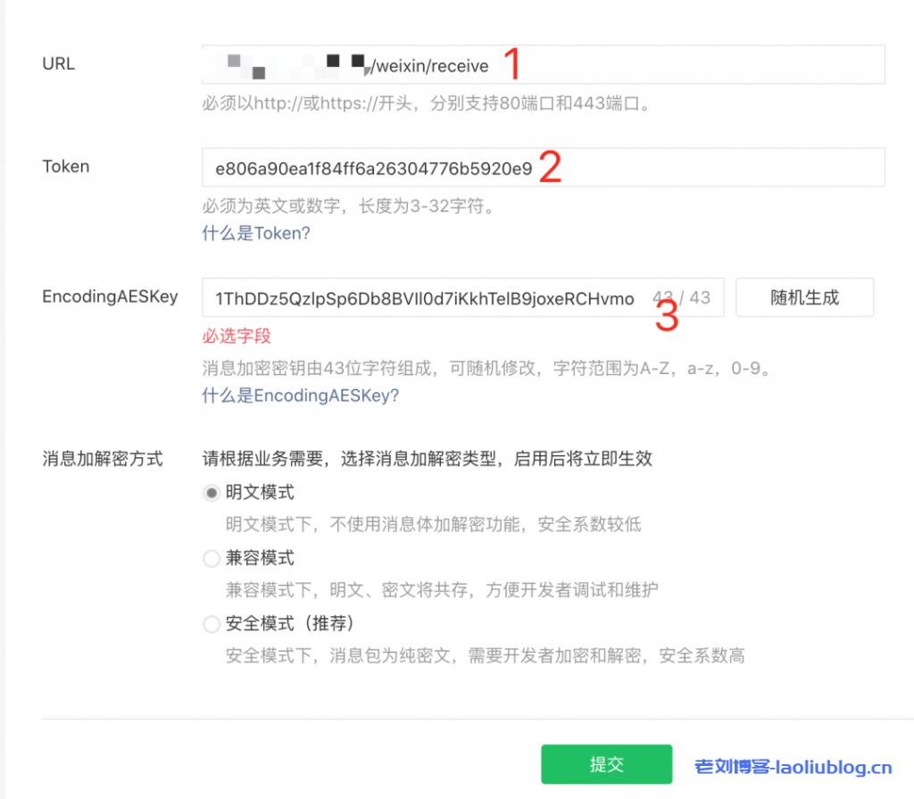 我们本期只做接收图片消息,验证完成以后回复消息,所以只需要配置 3、4。