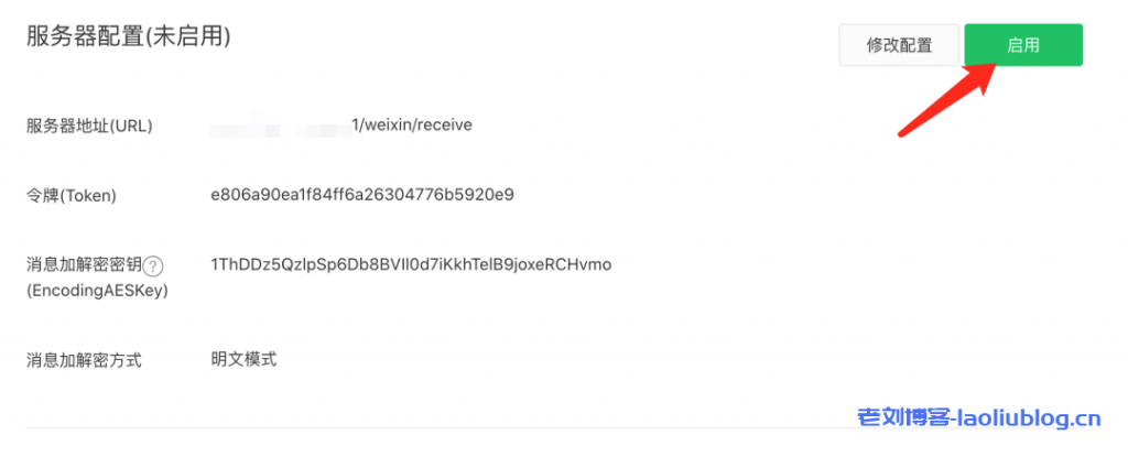 - 服务地址,这个就是我们用来接收微信平台转发的用户消息的服务的地址