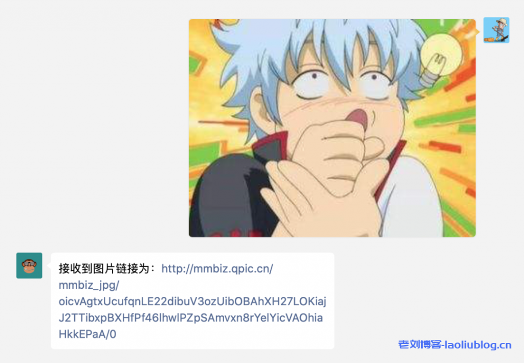 第一步还是验证消息是否来自微信平台,然后使用 wechatOfficialService.toMap 方法解析出接收消息的内容,当前判断比较简单,直接判断是否是图片消息,然后返回图片的 URL 给发送消息的用户。效果图如下