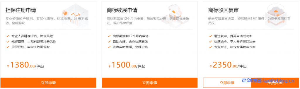 阿里云自从开设商标智能注册服务后,累计目前商标递交量已经突破100万件,审核后能够最快1分钟递交商标局,更有商标顾问注册,1对1辅导;同时可以进行商标交易,购买已注册商标,热门商标明码标价,专家1对1免费咨询。本文老刘博客主要介绍阿里云商标智能注册服务都具体有哪些服务内容。