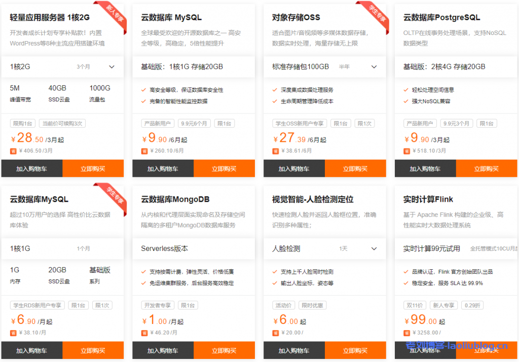 3、OSS对象存储单产品:固定规格27.39/半年,49.5/1年:标准(LRS)存储包100GB,优惠地域限中国大陆境内,支付后立即开通;新购优惠价仅供此前未购买过OSS产品的学生用户享受,限首次单件;续费或升级该商品需按照官网原价购买;