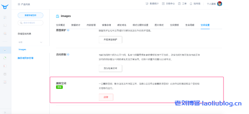 2 最下面可以找到 删除空间,点击后需要输入 空间名称,账号密码 后才会删除。